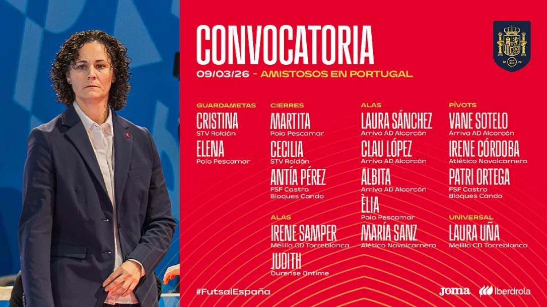 De la nueva convocatoria destaca la vuelta de Elena, la portera de Poio Pescamar en detrimento de Ari, la guardameta de Alcorcón. También vuelven Vane Sotelo y María Sanz. Por contra se caen de la última concentración la ya apuntada Ari y la pívot catalana Paula Guix.